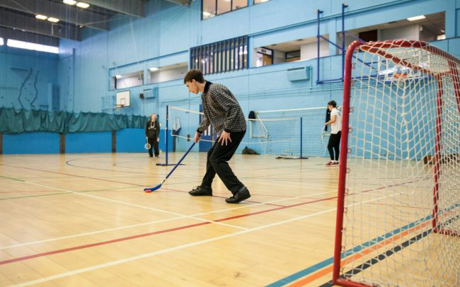 The hall has floor markings for badminton, volleyball, basketball and 5-a-side football with nets, goals and hoops available.